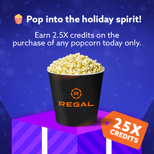 Must use Regal Crown Club card when purchasing popcorn on 12/23/25 only.
